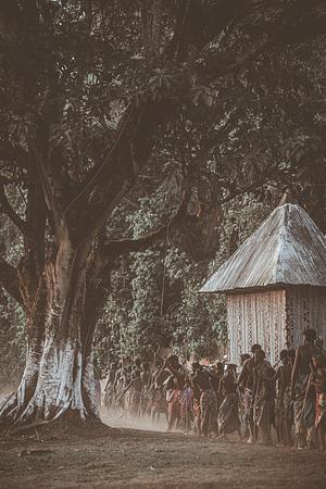 In a silent procession, a group of young people join a majestic tree, symbolizing the transmission of traditions and the link to the land that nourishes us.